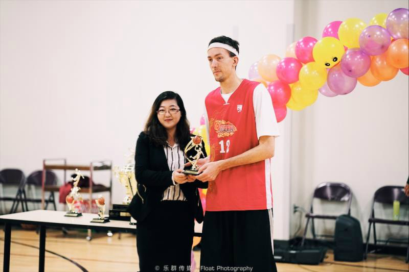 温城文化中心经理Amy女士为三分射手奖获奖人 Graham 颁奖。