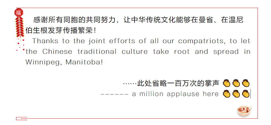 Yesterday, the Association of Chinese Calligraphers in Manitoba and the Winnipeg Chinese Cultural and Community Centre co-organized the “New Year of the Ox Blessing Party”, which was co-hosted by Sancheng Real Estate. Did everyone had a good time? Today, the Winnipeg Chinese Cultural and Community Centre, together with various community performing groups, prepared a singing and dancing party for everyone to share the joy and blessing of the New Year together!