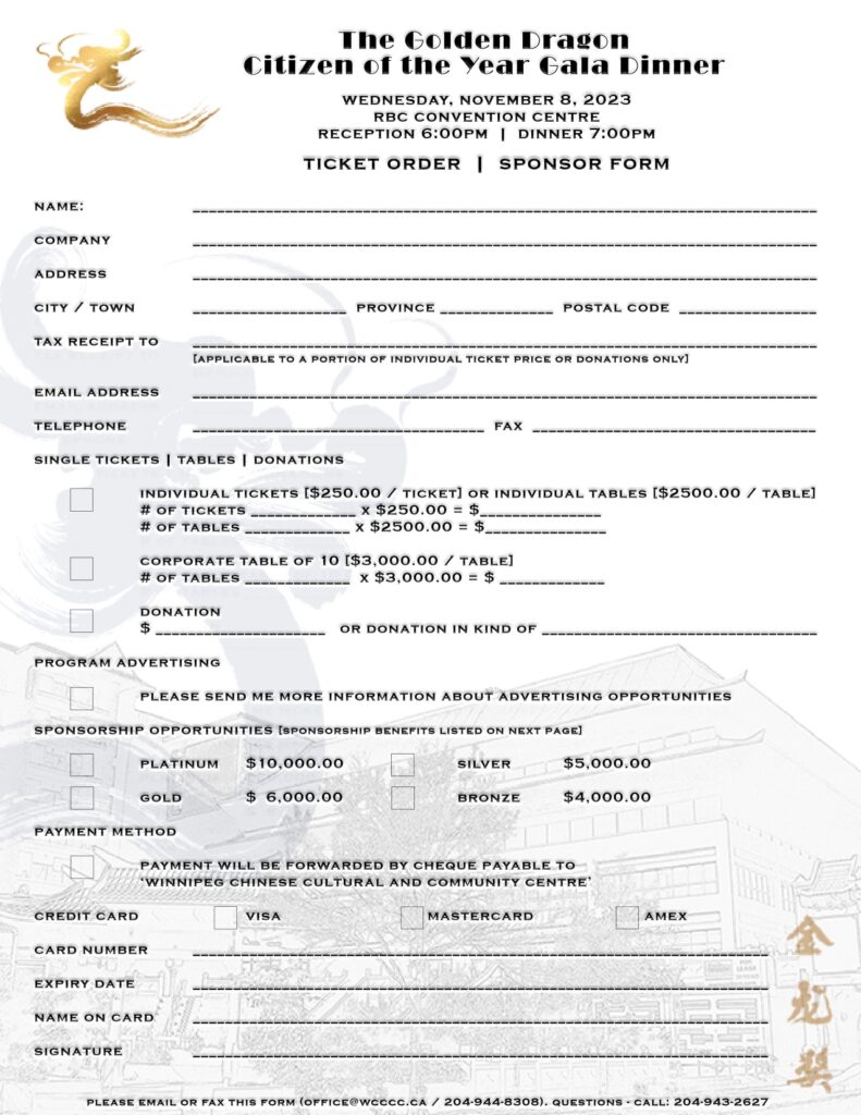 Join us for the event to support the Winnipeg Chinese Cultural & Community Center! The downloadable ticket order form is attached.