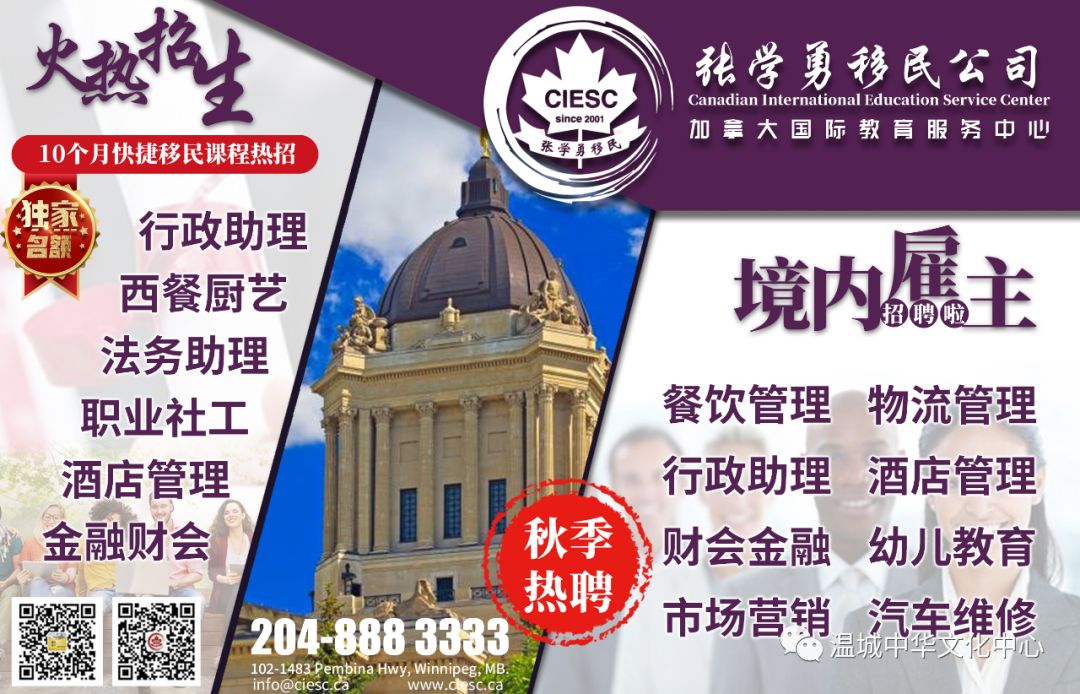 地址:温城中华文化中心二楼 – 2nd Floor, 180 King Street, Winnipeg, MB